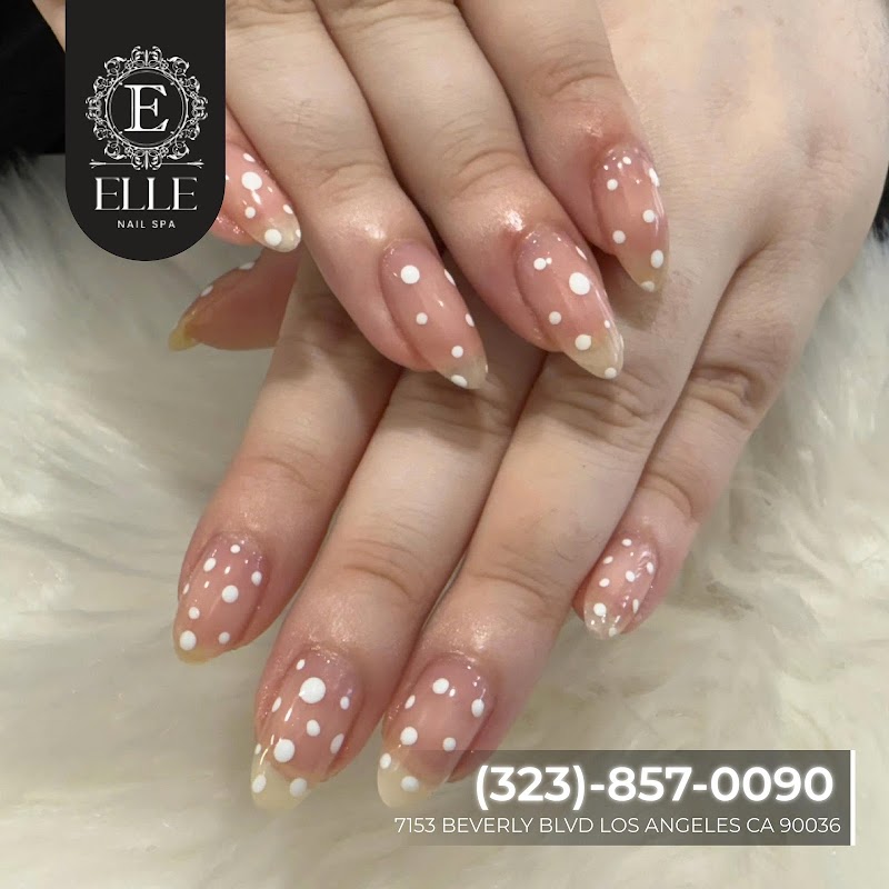 Elle Nail SPA Beverly is a nail salon in Fairfax, Los Angeles, rated 4.4 stars on Google. The salon is known for high-shine glossy lacquers and intricate hand-painted nail art.