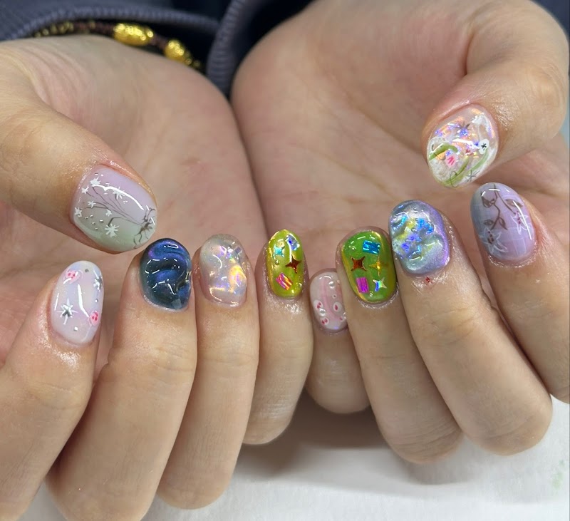 Spicy Nails by Hannah is a nail salon in Koreatown, Los Angeles, rated 5 stars on Google. The salon is known for high-shine glossy lacquers and intricate hand-painted nail art.