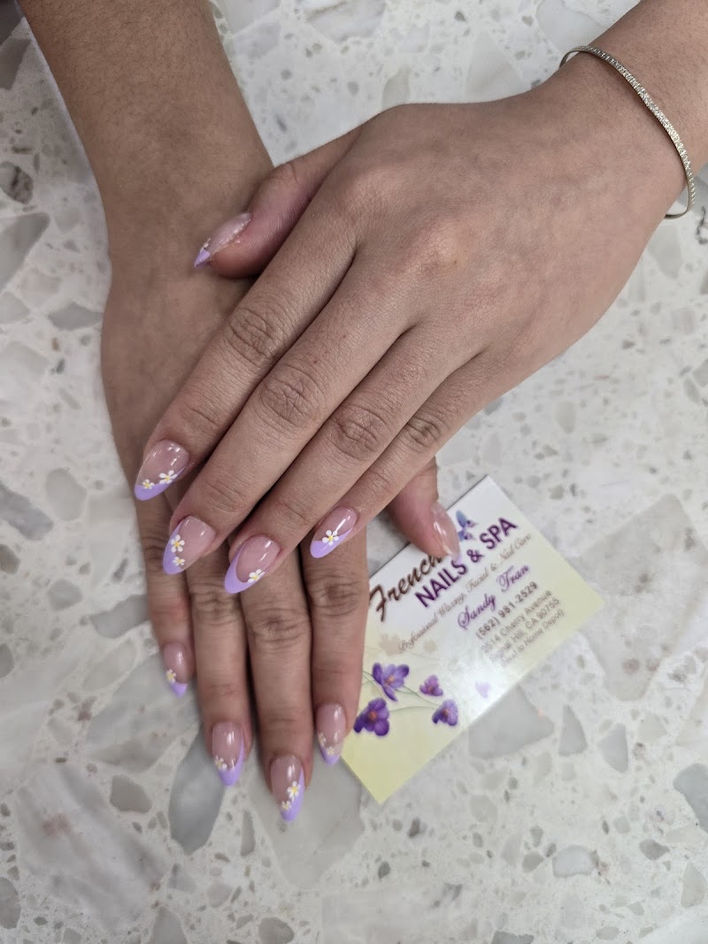 French Nails & SPA is a nail salon in Signal Hill, Los Angeles, rated 4.1 stars on Google. The salon is known for high-shine glossy lacquers and intricate hand-painted nail art.