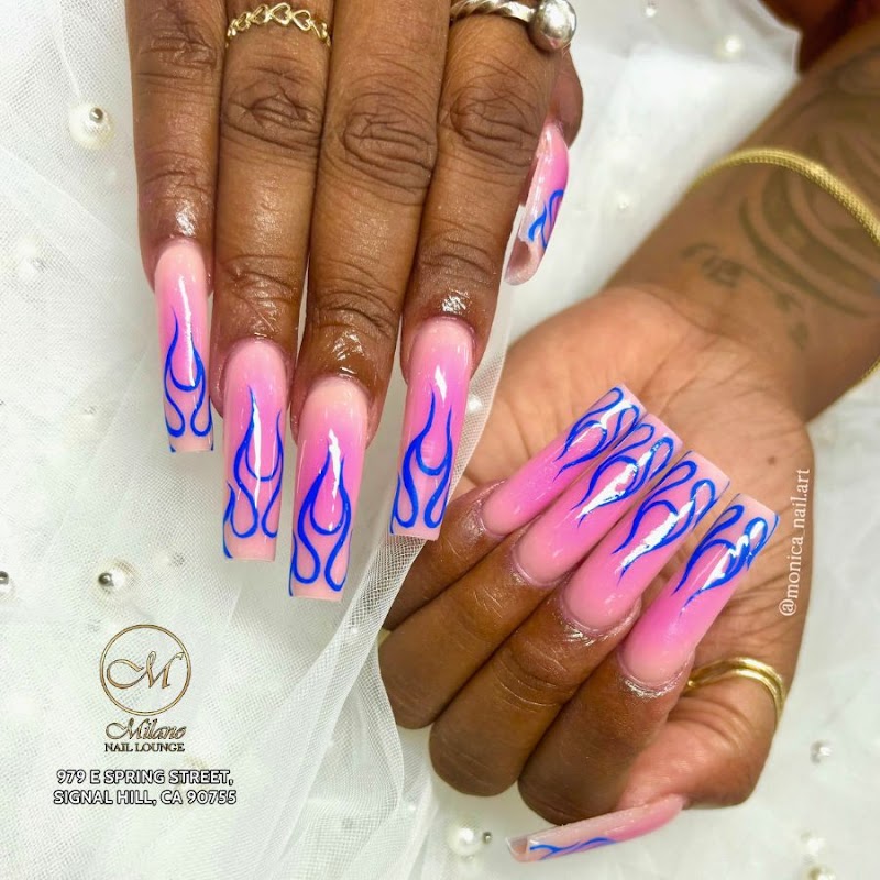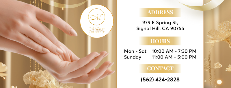 Milano Nail Lounge is a nail salon in Signal Hill, Los Angeles, rated 4.7 stars on Google. The salon is known for high-shine glossy lacquers and refined French tip manicures.