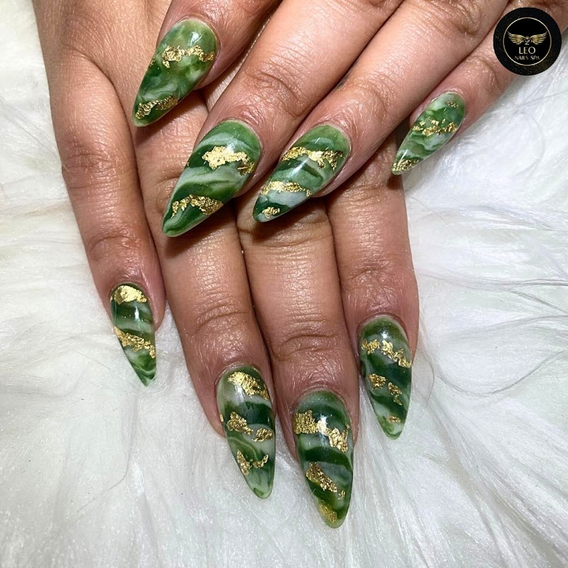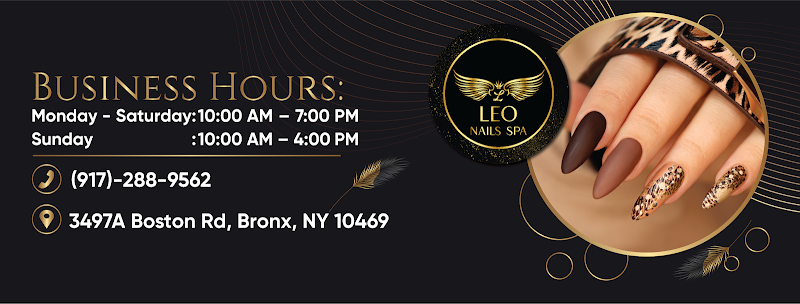 Leo Nails SPA is a nail salon in The Bronx, New York, rated 4.3 stars on Google. The salon is known for glitter-gel effects and intricate hand-painted nail art.