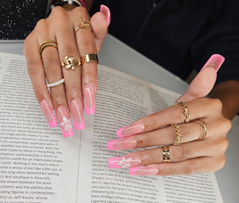 Silkk Esthetics is a nail salon in Bushwick, New York, rated 4.7 stars on Google. The salon is known for high-shine glossy lacquers and delicate floral nail art.