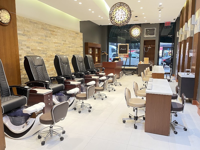 Wistaria Nail SPA II is a nail salon in Hell's Kitchen, New York, rated 4.1 stars on Google. The salon is known for high-shine glossy lacquers and refined French tip manicures.