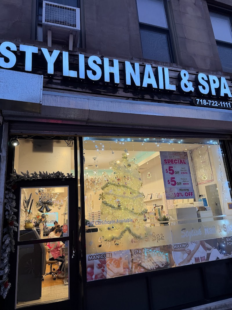 Stylish Nail and SPA is a nail salon in Park Slope, New York, rated 4.4 stars on Google. The salon is particularly noted for high-shine glossy lacquers.