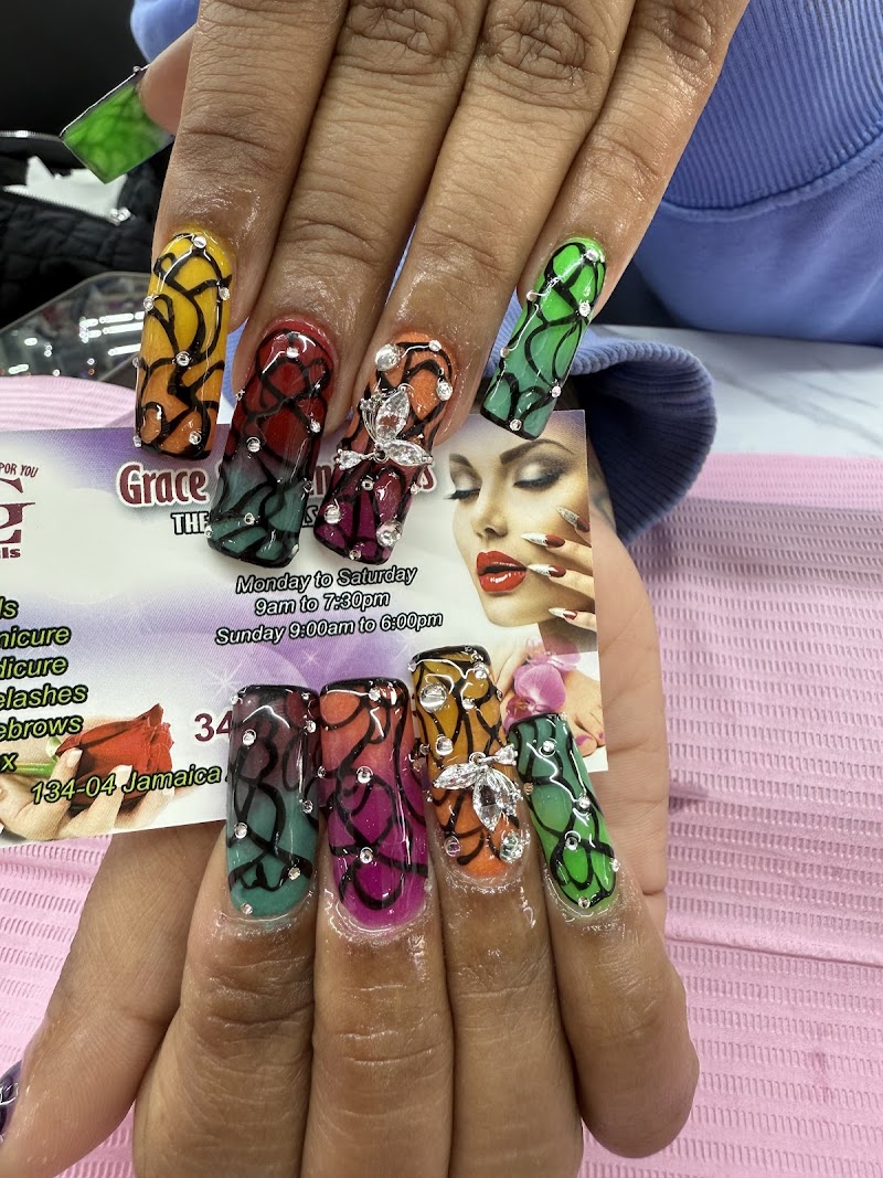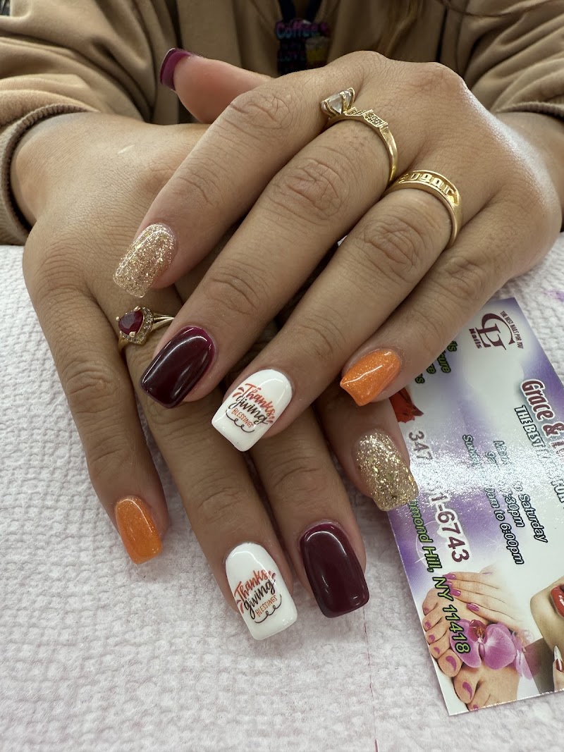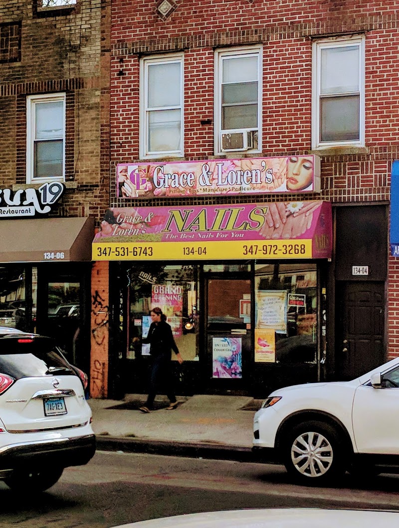 Grace & Loren's Nails Salon is a nail salon in Queens, New York, rated 3.8 stars on Google. The salon is known for high-shine glossy lacquers and intricate hand-painted nail art.