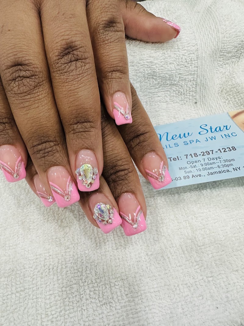 New Star Nails SPA is a nail salon in Queens, New York, rated 4 stars on Google. The salon is known for glitter-gel effects and refined French tip manicures.