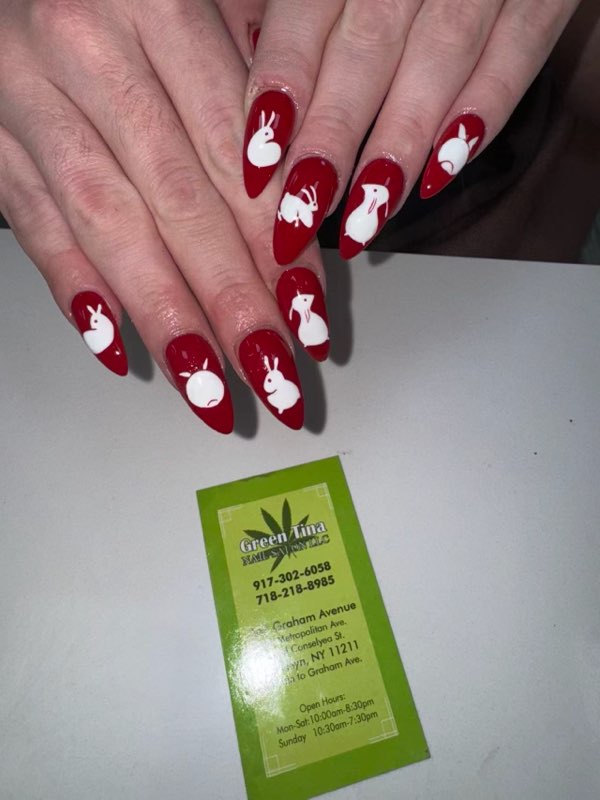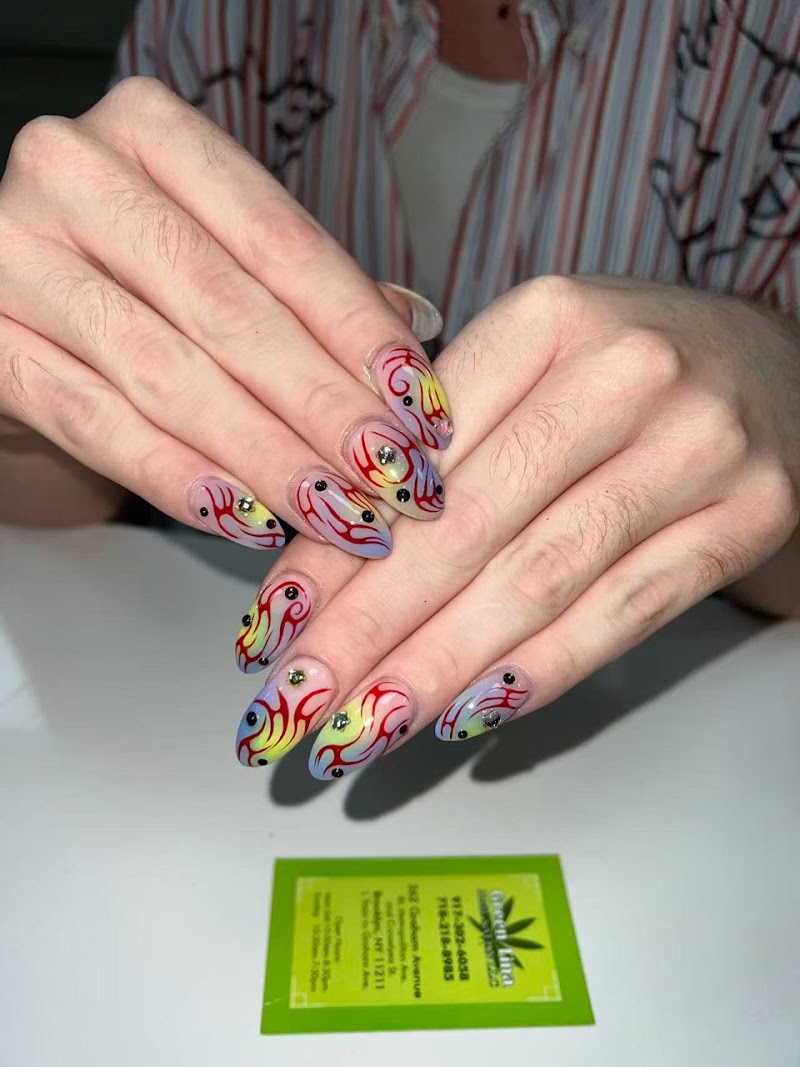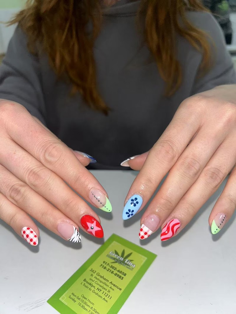 Tina Green Nail Salon is a nail salon in Williamsburg, New York, rated 3.9 stars on Google. The salon is known for high-shine glossy lacquers and intricate hand-painted nail art.